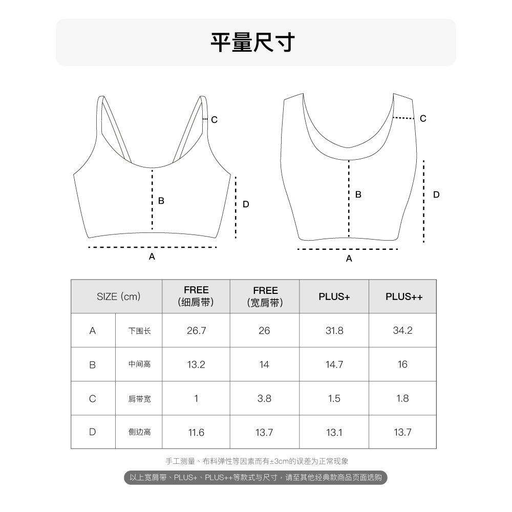 ✅细肩带可调节;宽肩带为一体成型,不可调