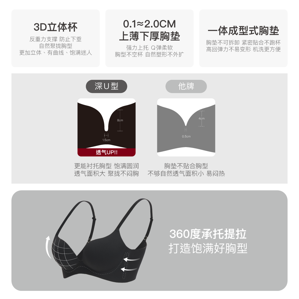 同时提供反重力支撑,让你的胸型更加立体、曲线更加迷人。